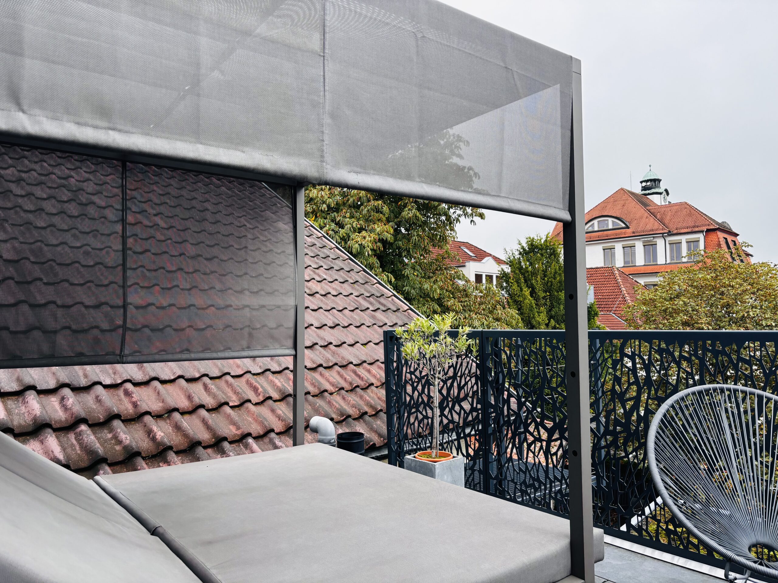 Über den Dächern von Dettingen erwartet Sie ein Rückzugsort der besonderen Art. Unser exklusives SPA Studio verfügt über eine private Dachterrasse mit einzigartigem Blick ins Ermstal – perfekt, um besondere Wellness-Momente zu genießen und den Tag entspannt unter freiem Himmel in unserem Day-bed ausklingen zu lassen.