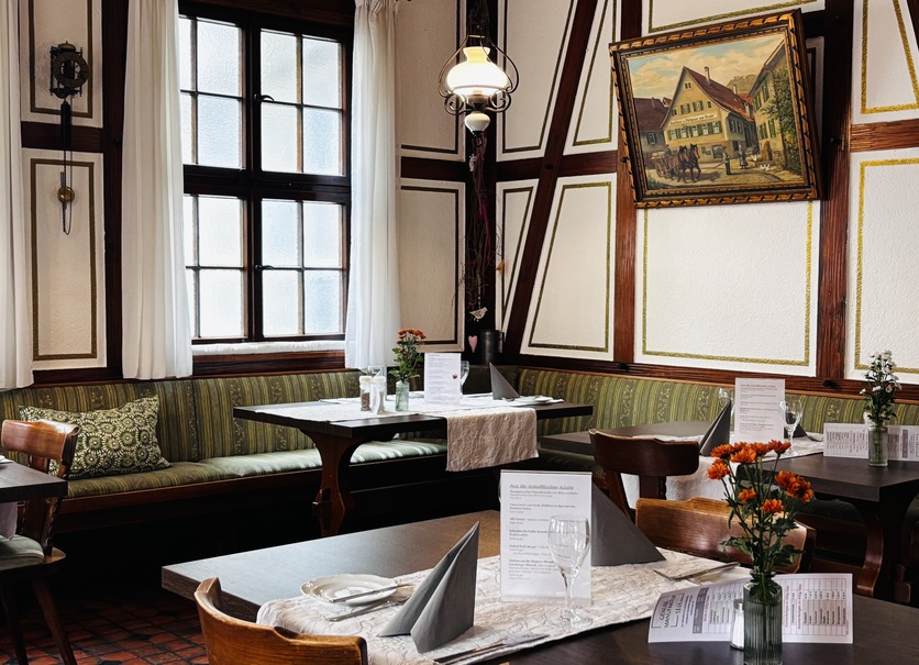Moderne, bodenständige Küche, mit Leidenschaft und Liebe zum Detail, so lautet das Credo von Küchenchef Stephan Schlecht. Die Speisekarte steckt daher voller hausgemachter Köstlichkeiten. Typische regionale Spezialitäten wie Kutteln, Rostbraten und handgeschabte Spätzle servieren wir ebenso wie internationale Gerichte, die wir sorgfältig mit ausgewählten Zutaten frisch für Sie zubereiten. Unsere schwäbischen Maultaschen kochen wir traditionell nach unserem Generationen Familienrezept. Gerne führen wir Sie aber auch auf kulinarische Entdeckungsreise.